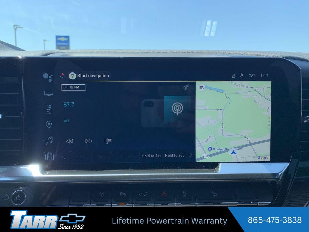 Convenience Package: LED Cargo Area Lighting; Manual Tilt and Telescoping Steering Column; 10-Way Power Driver Seat Adjuster with Lumbar; Front LED Fog Lamps; Dual-Zone Automatic Climate Control. Heat Package: Heated Steering Wheel; Heated Driver and Front Outboard Passenger Seating. Z71 Off-Road Package: Hill Descent Control; Skid Plates. Safety Package: HD Surround Vision; Trailer Side Blind Zone Alert; In-Vehicle Trailering App System; Ultrasonic Front and Rear Park Assist; Rear Cross Traffic Alert; Trailer Camera Provisions; Bed View Camera with Two Trailer Camera Provisions. Trail Boss Package: Black Grille Bar with Chevy Black Bow Tie; High Gloss Black Door Handles; Body-Color Rear Bumper; Heated and Auto-Dimming Vertical Trailering Mirrors; Body-Color Front Bumper; Black Skid Plate; 20" High Gloss Black Painted Wheels; High Gloss Black Mirror Caps; Black Chevytec Spray-On Bedliner; Animated LED Projector Headlamps; Front Frame-Mounted Red Recovery Hooks. Preferred Equipment Group 1LT: HD Rear Vision Camera; Rear 60/40 Folding Bench Seat (folds Up); Durabed Pickup Bed; SiriusXM with 360L Trial Subscription; Bluetooth® For Phone; Heated Vertical Trailering Mirrors; 170 Amp Alternator; Wireless Phone Projection; Standard Tailgate; Suspension Package; 120-Volt Interior Power Outlet; Steering Wheel Audio Controls; Chevrolet Connected Access Capable; Color-Keyed Carpeting Floor Covering; OnStar Services Capable; 120-Volt Bed Mounted Power Outlet; Power Front Windows with Passenger Express Down; Halogen Reflector Headlamps; Front Rubberized Vinyl Floor Mats; Black Mirror Caps; Rear Rubberized Vinyl Floor Mats; 4-Way Manual Driver Seat Adjuster; 2-Speed Electronic Shift Transfer Case; Deep-Tinted Glass; 3.73 Rear Axle Ratio; 6.6L Gas V8 Engine with Direct Injection and VVT; Electronic Cruise Control with Set and Resume Speed; Power Rear Windows with Express Down; 10-Speed Automatic Transmission; Power Front Windows with Driver Express Up/down; Wrapped Steering Wheel; Compass; EZ Lift Power Lock and Release Tailgate; Keyless Open and Start; Wi-Fi Hotspot Capable; Push Button Start; Power Door Locks. Remote Start Package: Remote Vehicle Starter System; Electric Rear-Window Defogger; Unauthorized Entry Theft-Deterrent System. 20" High Gloss Black Painted Wheels. Gooseneck/5th Wheel Prep Package. 4" Round Black Assist Steps. Front Bucket Seats. Black Chevytec Spray-On Bedliner. Heated and Auto-Dimming Vertical Trailering Mirrors. LT275/65R20 AT BW Ti